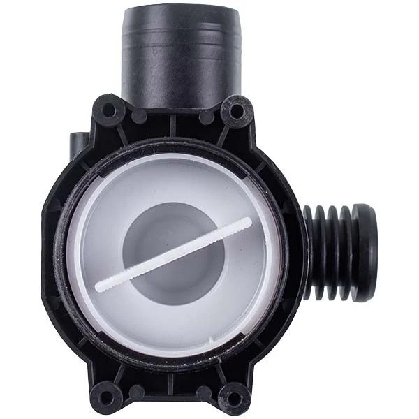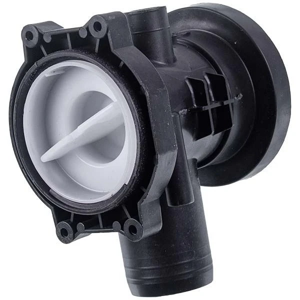 Корпус насоса з фільтром для пральної машини — це пластиковий вузол, який поєднує в собі корпус помпи та вбудований фільтр для уловлювання дрібних предметів і сміття. Така конструкція виконує одразу дві функції: спрямовує потік води від насоса в зливний тракт і захищає насос від потрапляння сторонніх предметів (наприклад, монет, ґудзиків, ниток), які можуть порушити його роботу або пошкодити крильчатку.