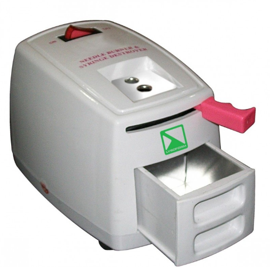 Електричний прилад легко і безпечно знищує голку методом спалювання, і зрізає канюлю шприца. Позбавляє від необхідності збору та подальшого знищення голок в муфельній печі. Зводить до мінімуму можливість контакту і травматизації використаної голкою. Легко дезінфікується і миється. Рекомендується спалювати не більше 6 голок за хвилину.