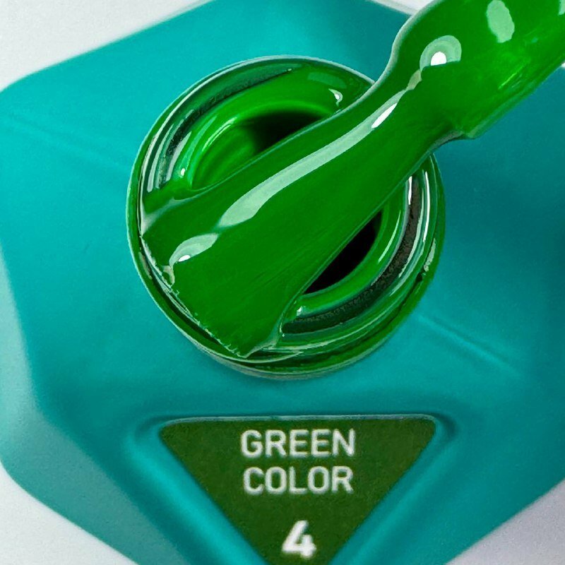 Victoria Avdeeva GREEN COLOR 4 — кольоровий гель-лак із глибоким темно-зеленим відтінком. Ідеальний для природного, осіннього або лаконічного дизайну. Має приємну текстуру, рівномірно лягає та тримається без втрати кольору до 4 тижнів. Підходить як для однотонного покриття, так і для дизайнів.