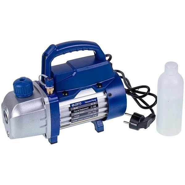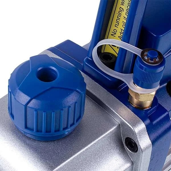 Одноступеневий вакуумний насос, призначений для вакуумування фреонових магістралей в системах охолодження і кондиціонування, виготовлений з алюмінієвого корпусу (який добре розсіює тепло), як єдиний пристрій без редуктора (для більшої компактності та зниження ваги), з еластичною муфтою між рухомими частинами (для низького шуму та вібрації).