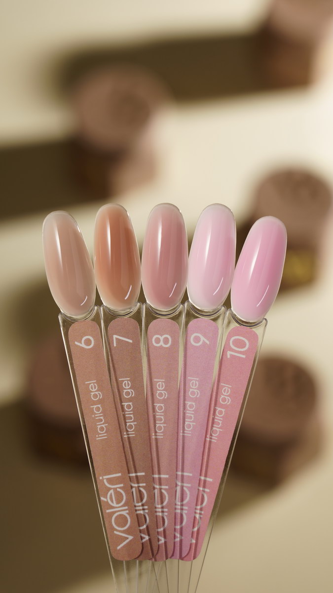 19 відтінків Valeri Liquid Gel оберуть любителі ніжного літнього френча, розтяжки кольору чи гарного градієнта.