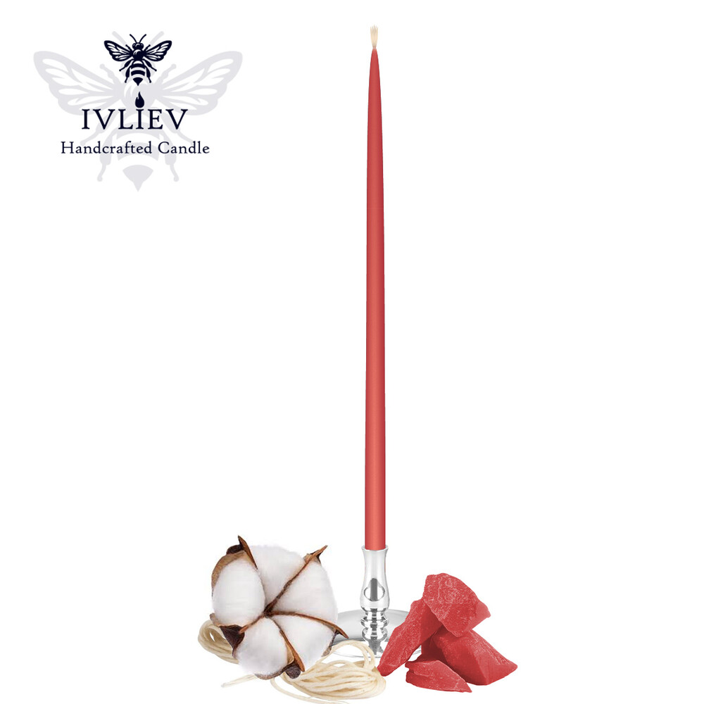 Свічка макана із бджолиного воску червона 25 см, 1 шт