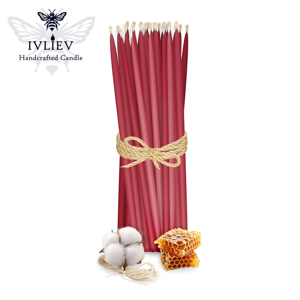 Свічка макана із бджолиного воску червона 25 см, 50 шт