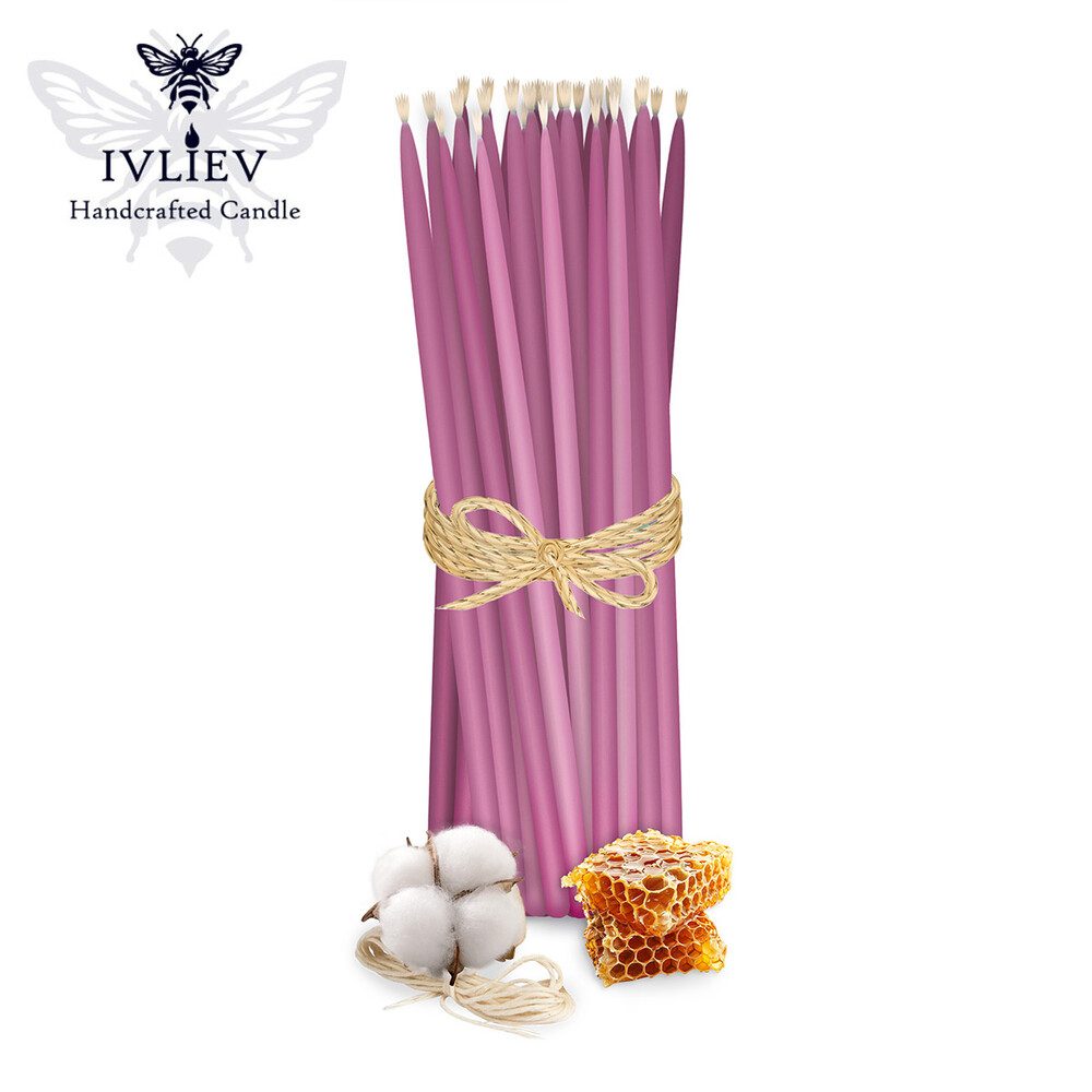 Свічка макана із бджолиного воску рожева 18 см, 10 шт