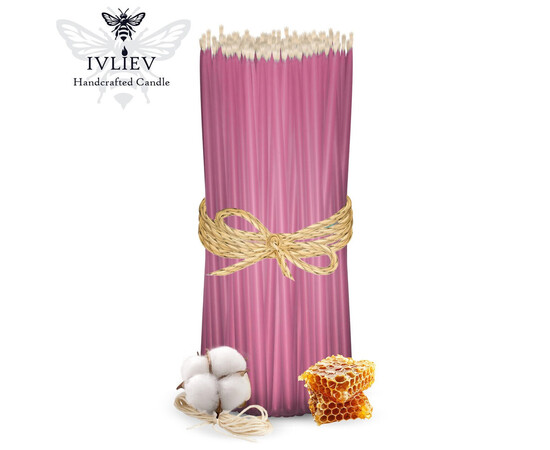 Свічка макана із бджолиного воску рожева 18 см, 350 шт