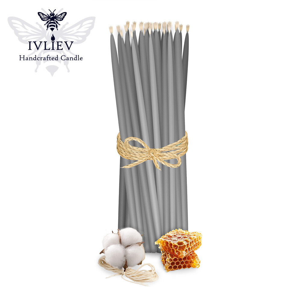 Свічка макана із бджолиного воску сіра 25 см, 50 шт