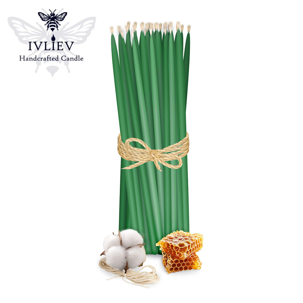 Свічка макана із бджолиного воску зелена 25 см, 10 шт