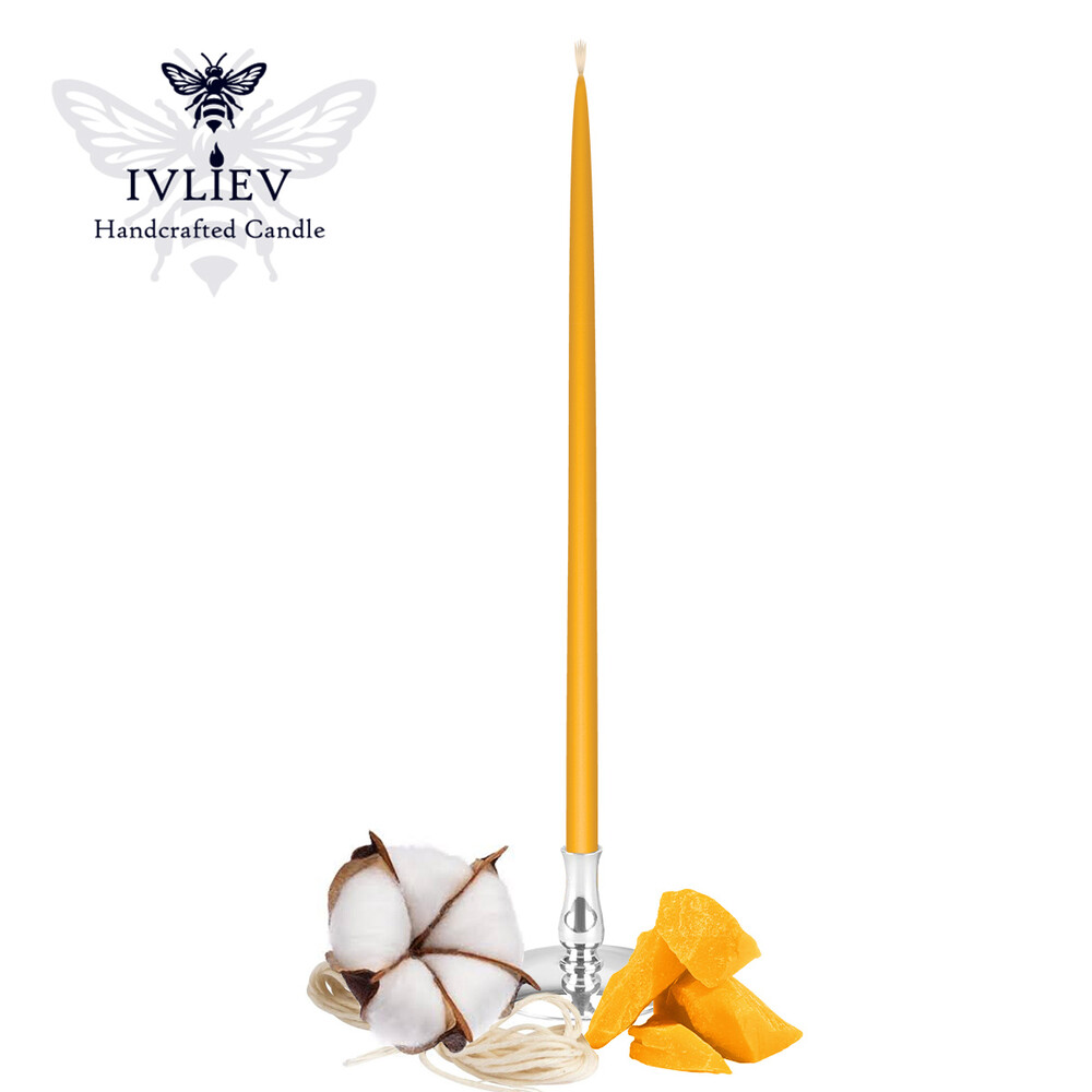 Свічка макана із бджолиного воску жовта 25 см, 1 шт