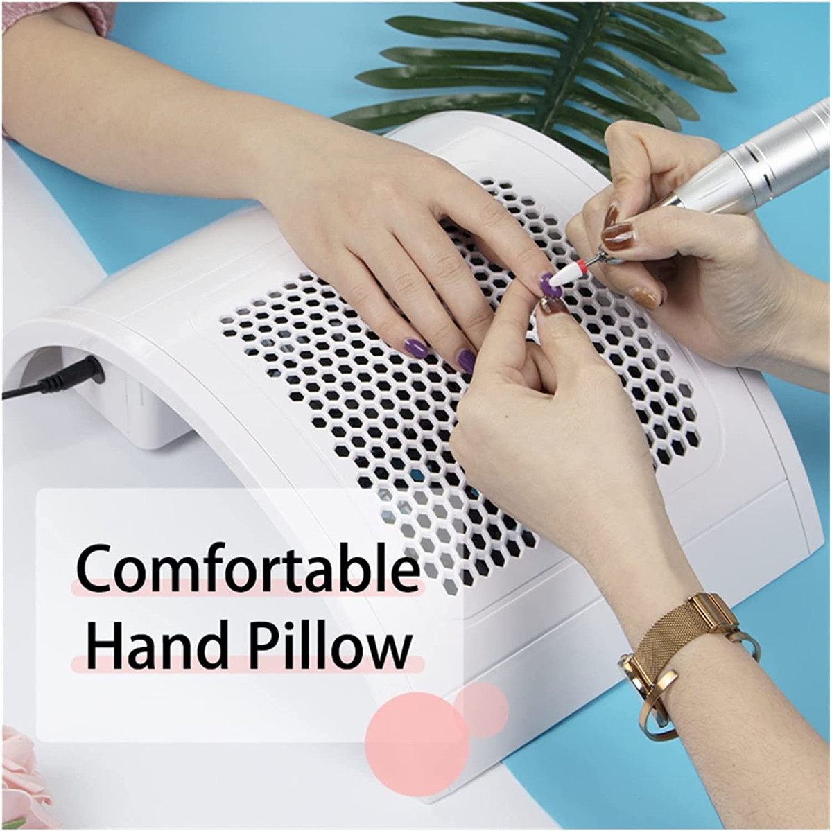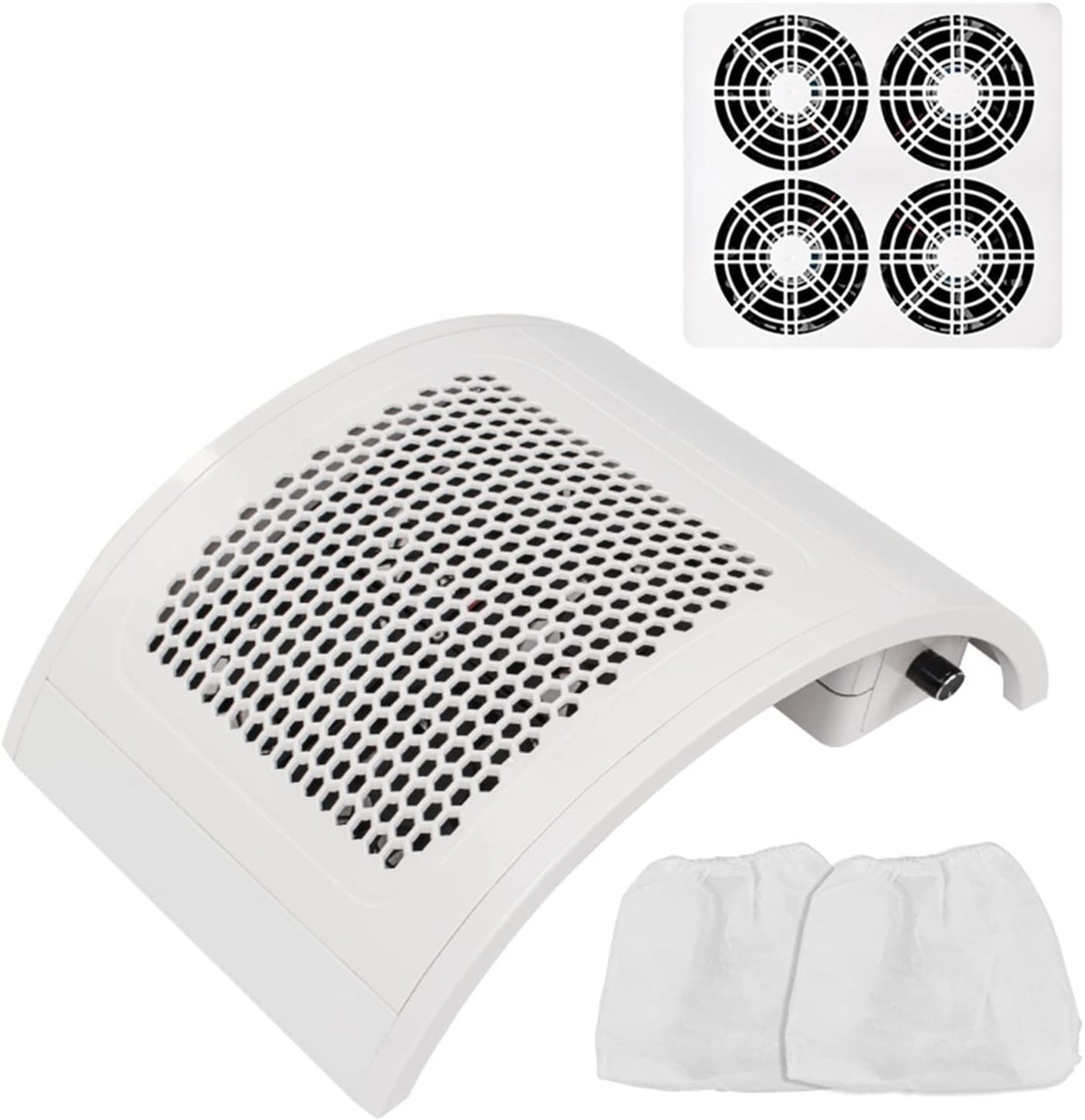 Потужна витяжка для манікюру 838-2 оснащена 4 вентиляторами. Призначена на дві руки для збору пилу при нарощуванні та корекції нігтів. Зручний настільний пилосос дозволить зберегти чистоту на робочому місці майстра з нарощування нігтів. Зручна конструкція забезпечить комфорт для рук клієнта. Призначена для професійного та домашнього використання. Витяжка манікюрна 838-2 чудово підійде для майстрів будь-якого рівня, як початківців, так і професійних. Вона добре поглинає пил, що виникає внаслідок нарощування та спилювання нігтів. Зручна у застосуванні і з естетичного боку так, як запобігають утворенню пилу на робочому столі, залишаючи його в акуратному охайному вигляді. Витяжка вловлює пил, розташовуючи його у спеціальних мішечках, передбачених у конструкції. Є 4 пропелери, які надійно всмоктують пил. Покриття витяжки виготовлене з міцного пластику, завдяки чому легко чиститься і піддається дезінфекції.