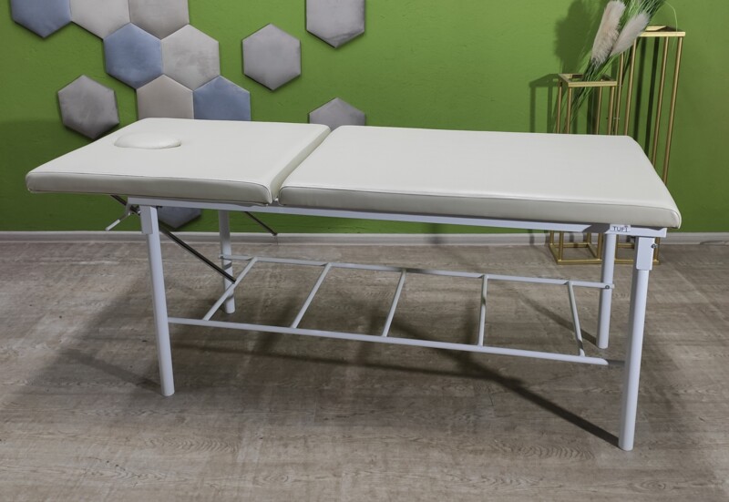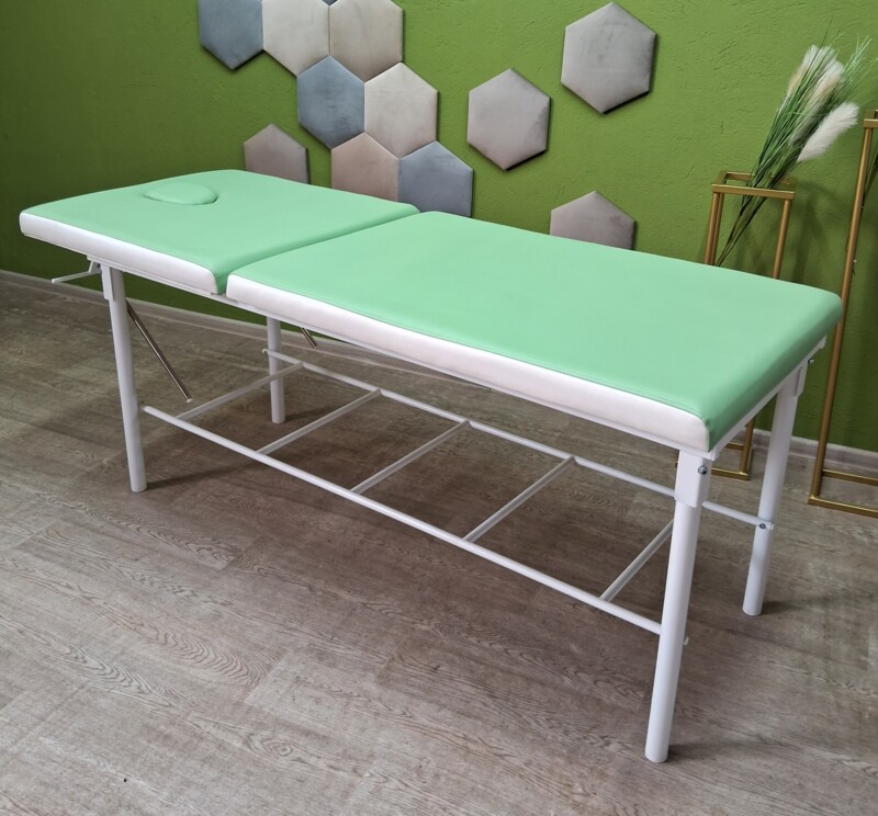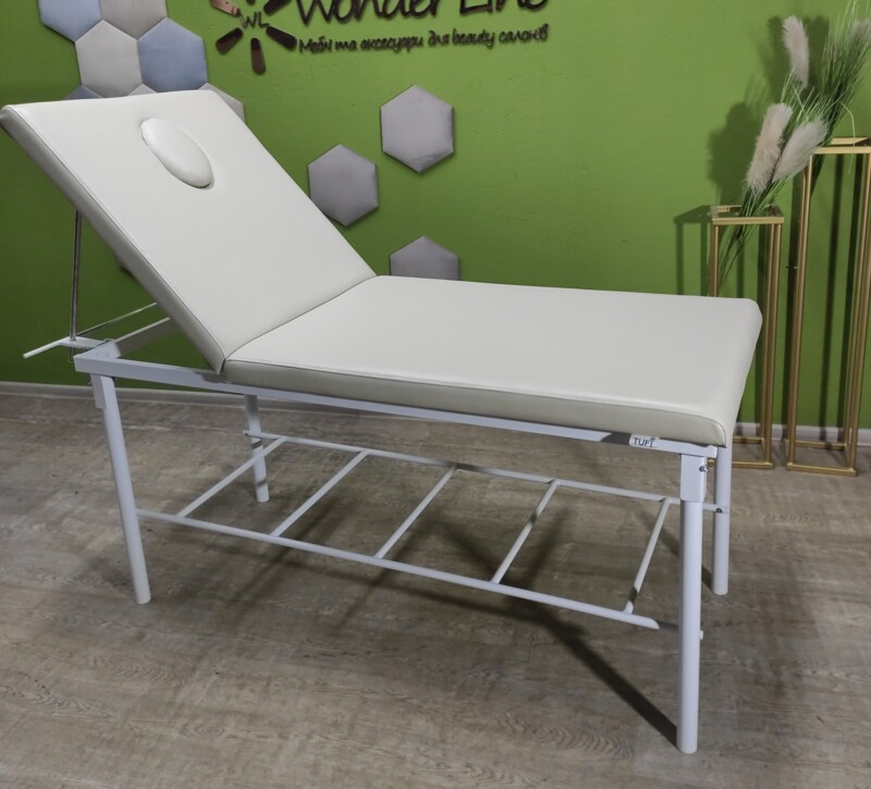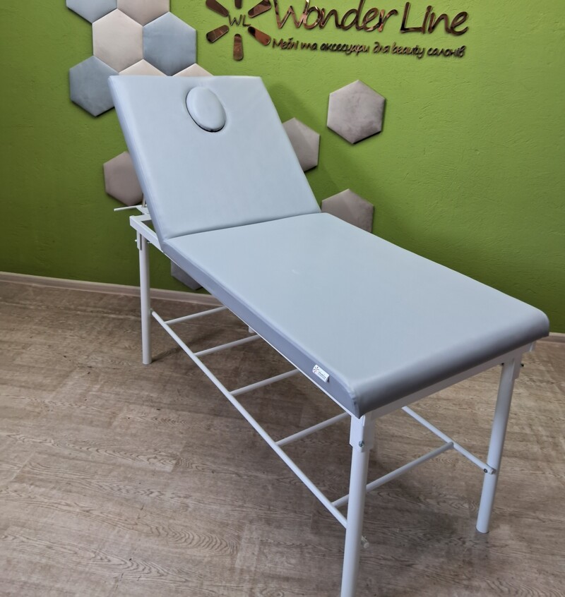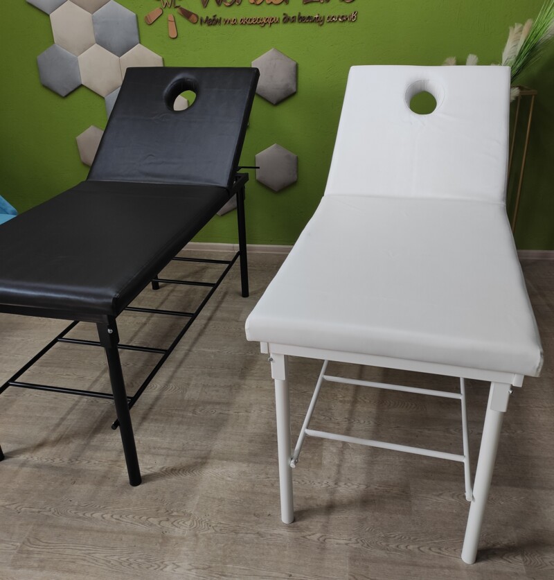 Кушетеа масажна. Може використовуватися для любого виду діяльності, так як регулюється від прямого кутаположення лежачи до положення сидячи під кутом 90 градусів. Ідеально підійде для масажу, косметологічних послуг, медичних маніпуляцій.