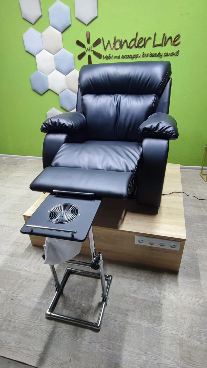 Завдяки електроприводу для плавного регулювання положення сидіння та підставки для ніг, реклайнер забезпечує максимальний комфорт для клієнтів, роблячи його використання ще зручнішим і практичнішим.