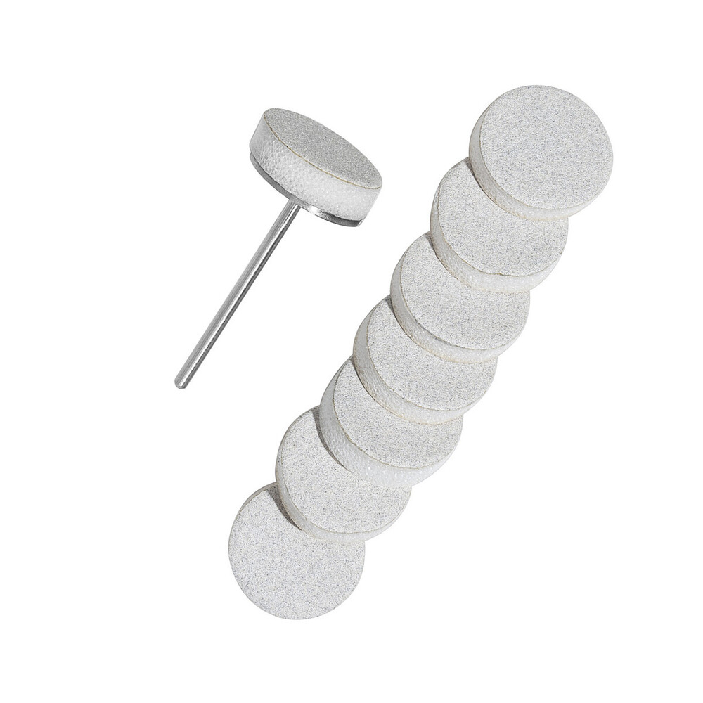 Змінні клейові файли-бафи для педикюрного диска 20 мм 50 шт. Високоякісні файли з безпечною кромкою товщиною 5 мм. Не ріжуть клієнта, легко знімаються з основи, якісний вологостійкий абразив. Спеціальне антистатичне покриття для роботи на швидкості до 40 000 об/мін.