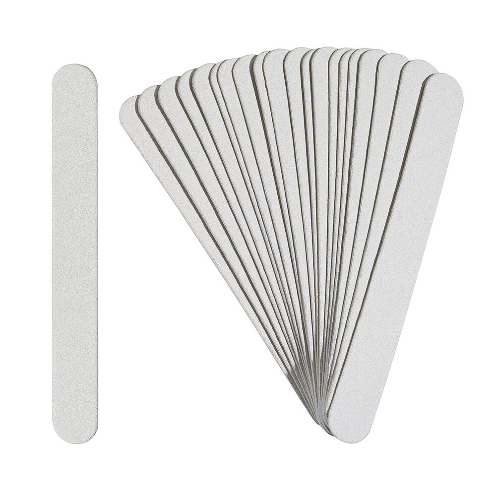 Змінні файли на м'якій основі для основи 130x15 мм 50 шт. Високоякісні файли з безпечною кромкою на м'якій основі. Зменшують тиск на нігтьову пластину, чим забезпечують комфорт для клієнта та майстра. Не ріжуть клієнта, легко знімаються з основи, якісний вологостійкий абразив, мають антистатичне покриття. 100 гріт - швидке формування штучних нігтів