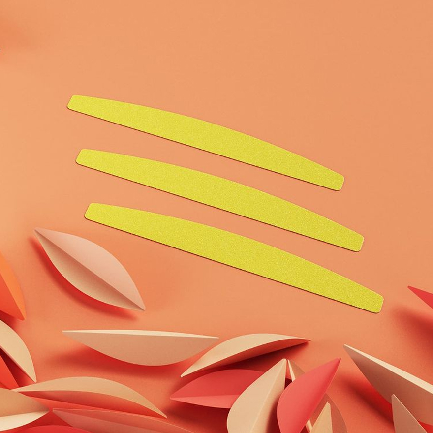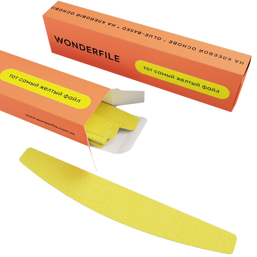 Файли півмісяць на клейовій основі. М'які, приємні, не обсипаються і ранять шкіру. Безпечний відступ файлу від краю основи, що захищає від порізів. Клей легко відклеюється навіть після стерилізації у сухожарі та не залишає слідів. Використання одноразових файлів дозволяє зробити салонний манікюр та педикюр абсолютно безпечними. Екологічний продукт.
