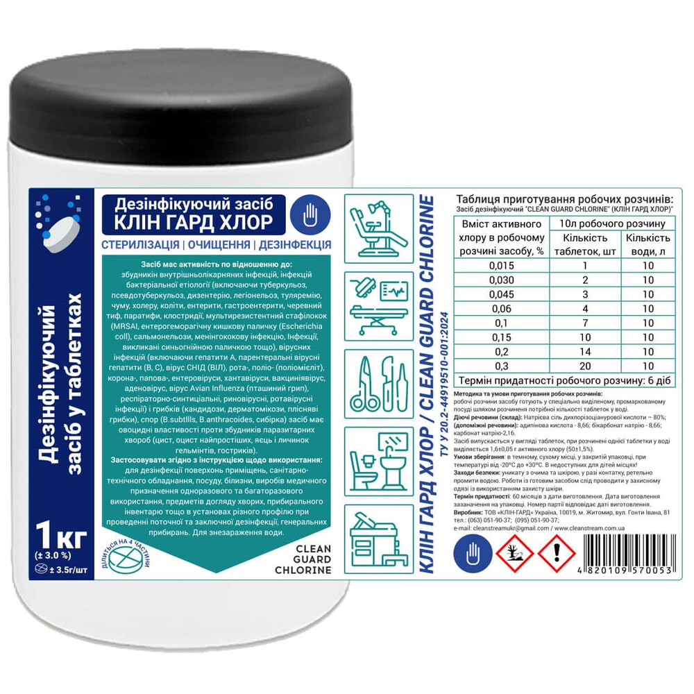 Дезінфікуючий засіб КЛІН ГАРД ХЛОР (таблетки), 1 кг