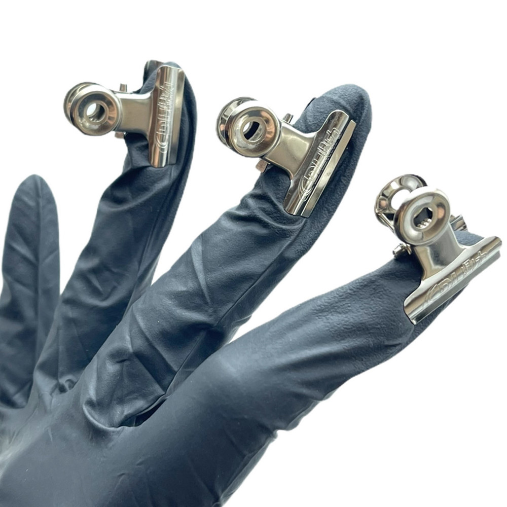 Затискач прищіпка для арки нігтя металевий має хорошу міцність, стійкий до впливу гелів та інших матеріалів, що використовуються при моделюванні. Техніка застосування металевого затиску – прищіпки дуже проста, він встановлюється зверху нігтьової пластини (див. фото товару). На розмір затиску впливає обрана для моделювання нігтя форма. Чим більша форма, тим більшого розміру має бути затискач, щоб забезпечити надійне кріплення. Адже саме від надійності кріплення арки багато в чому залежить якість роботи. Виготовлені із сталі сріблястого кольору.